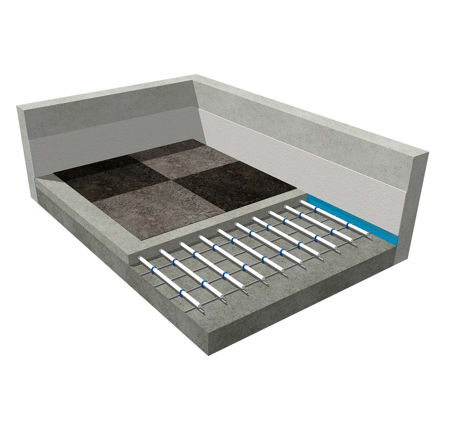 Het systeem dient afgewerkt te worden met een cementdekvloer of gietvloer (egaline).