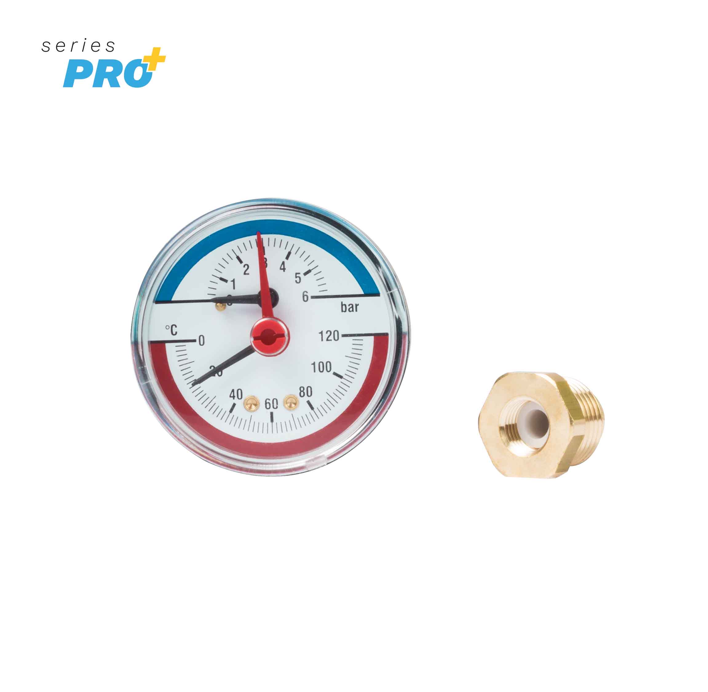 Voor de graden (0-120°C)- en baro (0-10 bar) meting. Te gebruiken in combinatie met de PRO+ series stalen verdelers.
