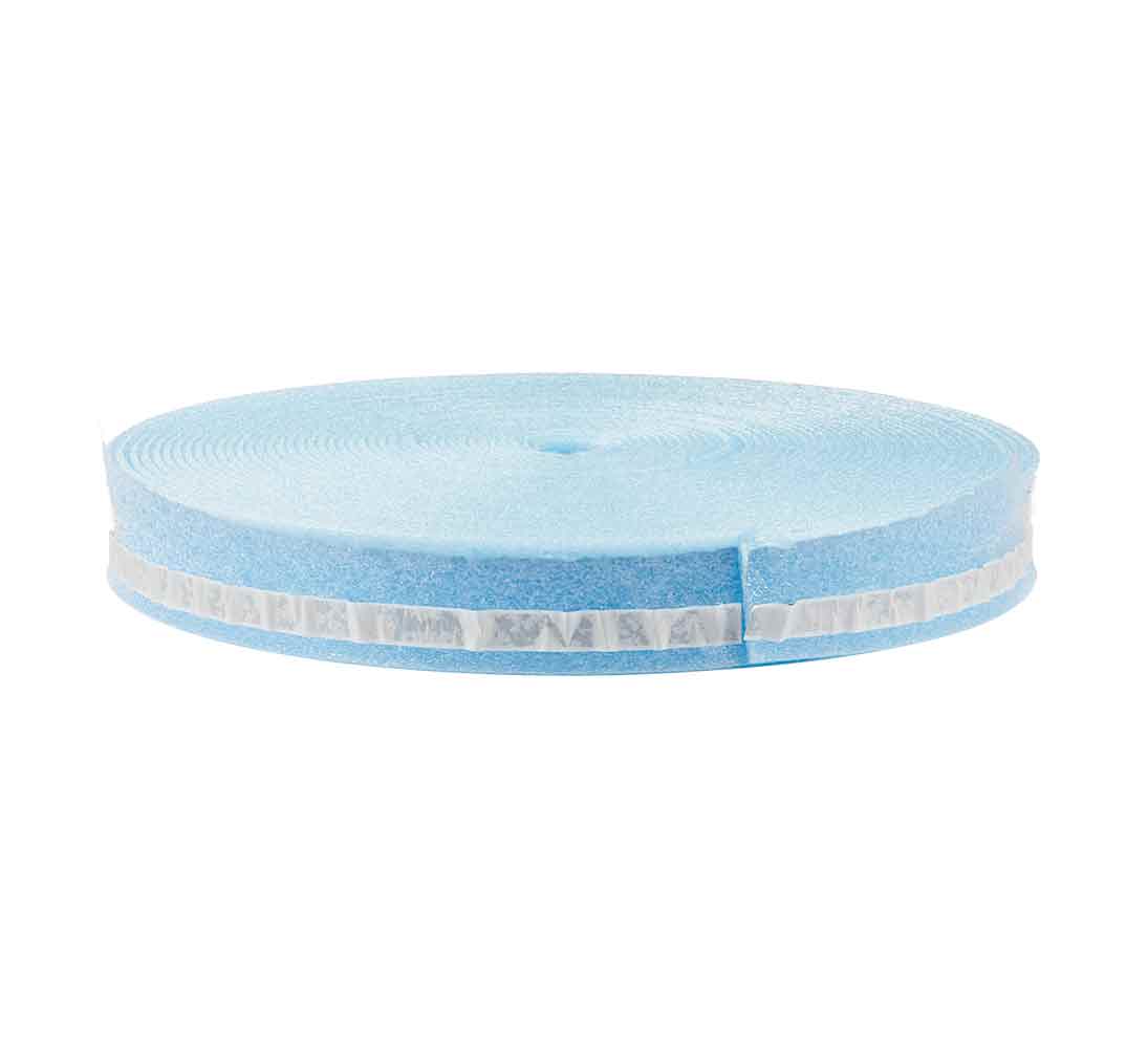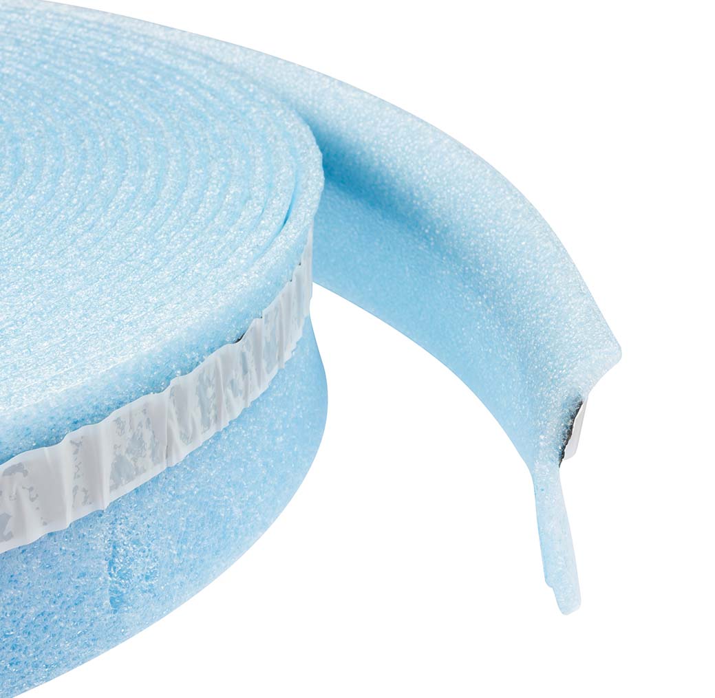 Er zijn rollen randisolatie met plakstrip die het bevestigen vergemakkelijken en de randisolatie op haar plaats houdt bij het aanbrengen van de vloer.