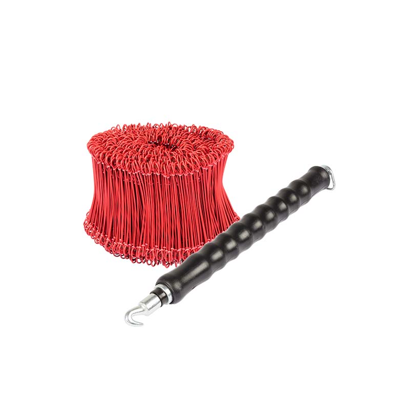 Eenvoudig hulpmiddel voor het verbinden van de vloerverwarmingsslang met stroppers aan de draadmatten.