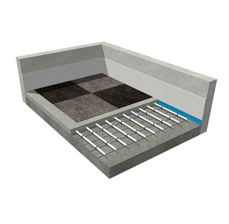 Ondergrond waar slang op bevestigd kan worden d.m.v. onderstaande tackernagels. Deze ondergrond werkt tevens als isolatie zodat de warmte niet in de ondergrond verloren gaat.